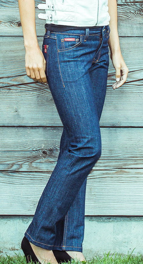 Das „Blaue Glück“ richtet sich an alle, die eine Hose für einen eher geraden Körperbau suchen. Die Leibhöhe liegt über dem Blauen Wunder und unter dem Blauen Begehren. Diese mittlere Leibhöhe wird auch mit einem gerade Bein kombiniert, das sowohl zu Sneakern als auch zu Schuhen mit etwas Absatz sehr gut getragen werden kann.